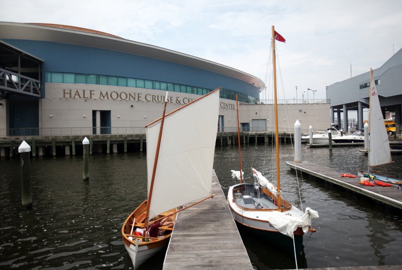 And below is my favorite boat of the show, Spartina, right, alongside a Penobscot 14. Like I said, I had to work, so I couldn't hang around too much. But I was up before sunrise launching Spartina and getting her docked. I didn't get to sail with all the other boats, but it was nice to have her out there for the show.